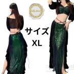 ベリーダンス衣装 スパンコール 上下セットアップ トップス オフショルダー へそ出し 肩出し スカート スリット入り 不規則裾 キラキラ レッスン着 人魚姫 ダン