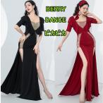 ベリーダンス衣装 セクシーワンピース トップス ロングスカート 2点セット3色 スパンコール付きドレス スリットあり 柔らかい 見せパンツ 大人用ダンス衣装 エレ