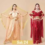 ベリーダンス衣装レディース2点セットKNK(株)スパンコールトップス+マキシ丈スカートで2way見せパンツ付きレッスンやステージにベリーダンスウェア