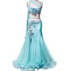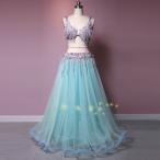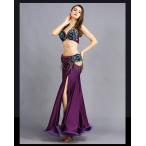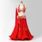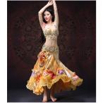 l新着 ベリーダンス 衣装 オーダーサイズ衣装 コスチューム 長袖付きブラ ロングスカート インナーパンツ付き 2点セット 花色 qc3006-1