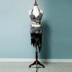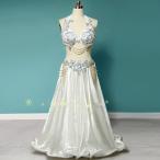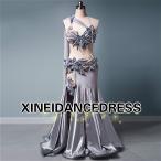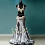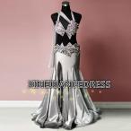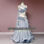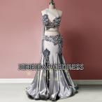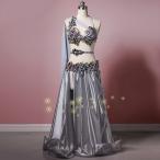 新着 ベリーダンス 衣装 オーダーサイズ衣装 コスチューム 片側半袖付きブラ ロングスカート インナーパンツ付き 2点セット 銀灰色 qc2961