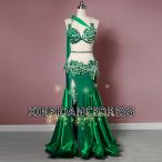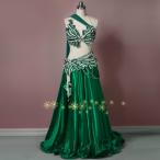 新着 ベリーダンス 衣装 オーダーサイズ衣装 コスチューム 片側長袖付きブラ ロングスカート インナーパンツ付き 2点セット 緑色 qc3007