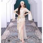 ベリーダンス衣装 4点セット 大人 オリエンタル エジプト サイディ バラディ パフォーマンス 民俗 ダンス衣装 ロング スリット ワンピース ベルト 髪飾り インナ