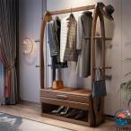 ベンチハンガー 靴棚付 玄関用シューズ&コートラック 木製の靴立てスツール 自立式 無垢材 フロアスタンド 寝室用コートラック シューズベンチ付き 寝室?リビン