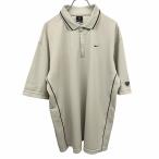ナイキ ゴルフ ポロシャツ 鹿の子 ハーフジップ 一部ボーダー 半袖 ポケット無し ポリ100% XL グリーンベージュ系 ベージュ系×黒 メンズ