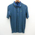 z■ナイキ/NIKE DRY-FIT 半袖ポロシャツ 鹿の子 ボーダー【L】青/men's/4【中古】