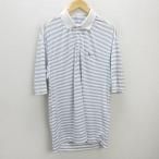 z■ナイキ/NIKE GOLF ボーダー柄 ゴルフウェア ロゴプリント/ポロシャツ【XL】白 灰系/MENS/68【中古】