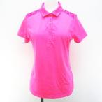 ナイキゴルフ NIKE GOLF ゴルフウェア DRI-FIT 半袖 ポロシャツ M 蛍光 ピンク ハーフボタン ライン ロゴ プリント リブ ストレッチ レデ