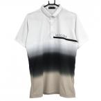 【超美品】ブリヂストン 半袖ポロシャツ 白×黒×ベージュ 格子織生地 グラデーション風 ULTICORE メンズ L ゴルフウェア Bridgestone