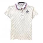 マンシングウェア 半袖ポロシャツ アイボリー×白 ロゴ英字総柄 ペンギンワッペン レディース L ゴルフウェア Munsingwear