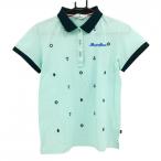マンシングウェア 半袖ポロシャツ ライトブルー×ネイビー 前身頃イカリ柄 レディース L ゴルフウェア Munsingwear