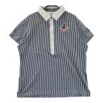 マンシングウェア 半袖ポロシャツ 白×ネイビー ボーダー 胸元ワッペン レディース L ゴルフウェア Munsingwear