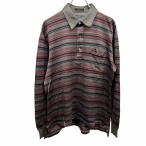 マンシングウェア グランドスラム ゴルフ ポロシャツ ボーダー Tシャツ生地 長袖 綿100% L ヘザーグレー 杢グレー×青紫×赤×黒 メンズ