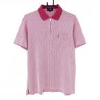 ミズノ THE OPEN 半袖ポロシャツ ピンク×白 細ストライプ ダイヤ織生地 アイスタッチ混 メンズ L ゴルフウェア MIZUNO(美品)/SALE価格