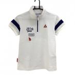【超美品】ルコックゴルフ 半袖ポロシャツ 白×ネイビー ハーフジップ ロゴ刺しゅう レディース M ゴルフウェア le coq sportif
