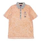 LE COQ GOLF ルコックゴルフ 半袖ポロシャツ ボタンダウン 総柄 オレンジ系 L ゴルフウェア メンズ