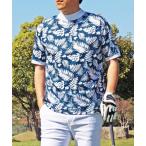 ゴルフ ボタニカル総柄 ドライ鹿の子 ゴルフ 半袖ポロシャツ ゴルフウェア メンズ メンズ