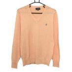 【超美品】ポールスチュアートスポーツ セーター サーモンオレンジ ケーブル編み風 Vネック メンズ M ゴルフウェア Paul Stuart SPORT