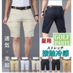 ゴルフパンツ メンズ ゴルフウェア 接触冷感 ハーフパンツ 半ズボン 夏 伸縮性良い 無地 スリム ストレートパンツ ビジネス ゴルフ オシャレ