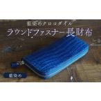 ふるさと納税 クロコダイルラウンドファスナー 長財布 藍染め仕様 財布 京都府八幡市