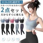 ヨガウェア 2点セット スポーツブラ ヨガパンツ 上下セット ストレッチ ゴムウェスト 速乾 吸汗 スポーツウェア 動きやすい ジム ランニング トレーニング 黒