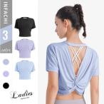 ヨガウェア おしゃれ トップス レディース 半袖 Tシャツ フィットネスウェア ホットヨガ バックデザイン クロス スポーツウェア ヨガウエア
