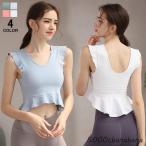 ヨガウェア トップス おしゃれ 体型カバー カップ付き タンクトップ フリル かわいい ブラトップ レディース 無地 スポーツブラ ヨガ フィットネス
