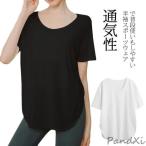 半袖 Tシャツ レディース 女性 ヨガウエア ゆったり 体型カバー フィットネスエクササイズ メッシュ トレーニング 無地 通気 吸汗速乾 XL スポーツウエア