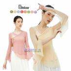 バレエ トップス 古典舞踊 ダンスウエア 長袖 シースルー メッシュ 透明感 Vネック ブラウス 中華ダンス チャイナ風民族ダンス衣装 エレガント スリット フリル