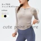 カップ付き フィットネスウェア レディース コンプレッションウェア ヨガウェア 速乾 フットネスTシャツ トレーナー トレーニングウェア