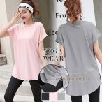 ヨガウェア トップス 半袖 ロング スポーツウェア スリット 運動着 ヨガ 健康 レディース 無地 運動 フィットネス ジムウェア