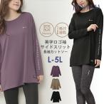 Tシャツ 大きいサイズ レディース メール便送料無料 長袖 サイドスリット ロゴ カットソー スポーツウェア トップス L LL 3L 4L 5L