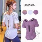 ヨガウェア トップス 半袖 Tシャツ レディース バッククロス 透かし感 スポーツウェア ダンス