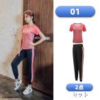 フィットネス ウェア レディース 長袖半袖 トップス パンツ 2点セット スポーツウェア ヨガ ウェア 吸汗 速乾 薄手 無地
