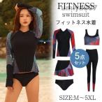 爆買 フィットネス水着 レディース 水着 セパレーツタイプ ジム用水着 5点セット ヨガ トレーニング スポーツ セパレート 競泳水着 長袖