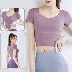 ヨガウェア スポーツTシャツ レディース 半袖 ヨガTシャツ トップス カップ付き 運動着 ランニング スポーツウェア 速乾 夏服 ジムウェア ストレッチ拔群