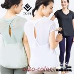 ヨガウェア レディース 半袖 Tシャツ 運動 スポーツ ヨガ ジム ランニング 無地 バックメッシュ トップス 吸汗