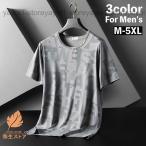 スポーツウェア Tシャツ 半袖 メンズ 男性 トップス ラウンドネック 接触冷感 速乾性 涼しい 運動着 トレーニングウェア カジュアル アルファベッ