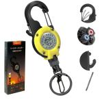 FINNECT カラビナ式ピンオンリール ブレード付き スナップ カラビナ リールキーホルダー キーリー