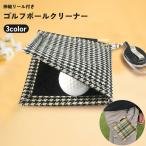 ゴルフボールクリーナー 伸縮リール カラビナ クラブ ハンカチ 汚れ取り 千鳥格子 吊り下げ 持ち運び 伸びる ボール拭き