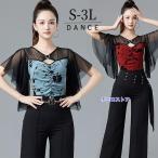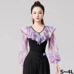 社交ダンス トップス レオタード式 社交ダンス衣装 上着 大きいサイズ 花柄 フリル ダンス用シャツ ダンスTシャツ 透け感 社交ダンス