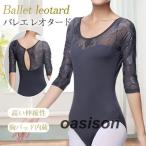 バレエ レオタード 半袖 七分袖 バレエ用品 大人 ラウンドネック 練習着 ダンス服 新体操 レッスン着 透け感 パット付き 発表会 背中開き