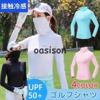 ゴルフシャツ レディース UVカット 長袖 インナーシャツ ストレッチ ひんやり マスク付き フェースカバー 夏 日焼け対策 ゴルフウェア 吸汗 速乾