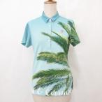 マンシングウェア MUNSINGWEAR ゴルフ スポーツウエア ポロシャツ 半袖 総柄 ヤシ柄 プリント 刺繍 青 緑 ブルー グリーン M レディース