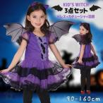 コスプレ 魔女 コウモリ 悪魔 子供 女の子 衣装 可愛い 大きい羽根 ドレス ワンピース カチューシャ 3点セット キッズ
