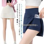 レディース ゴルフ ショート丈 ランニング スポーツスカート ハイウエスト ヨガ インナーパンツ付き テニス 運動着 レディース フィットネス ミニス
