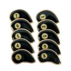 10x ゴルフアイアンヘッドカバー ゴルフクラブヘッドカバー保護ケース 刺繍番号 ブラック