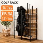 AZUMAYA(東谷) ゴルフ収納ラック ゴルフバッグ ゴルフクラブ ゴルフ用品 釣竿ラック ロッドスタンド 可動式棚板 木目調 化粧繊維板 スチール ブラック|OM-01BK