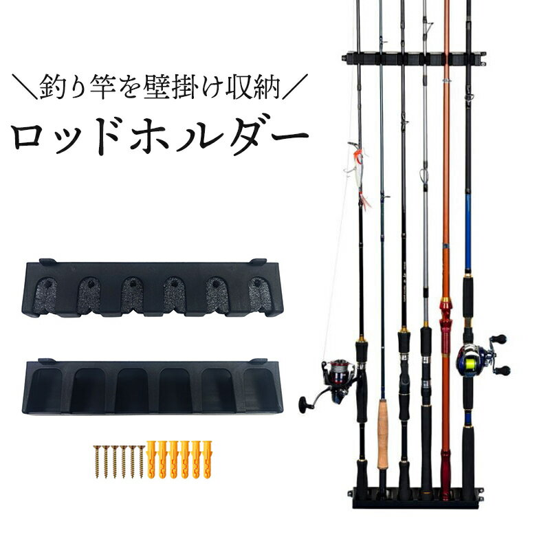 送料無料 ロッドホルダー ロッドスタンド 釣竿ラック 釣り竿 収納 6本 6連 保管 ディスプレイ 壁掛け 縦置き 垂直 竿立て 竿掛け フィッシング