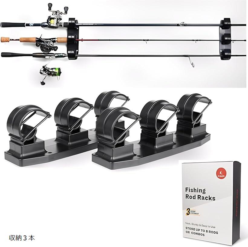 【送料無料】ロッドスタンド 3本 【天井や壁収納可能・日本語取説付き】竿掛け ロッドホルダー 壁掛け式ロッドスタンド 3本立て竿収納 釣り道具収納 ロッド収納 取扱簡単